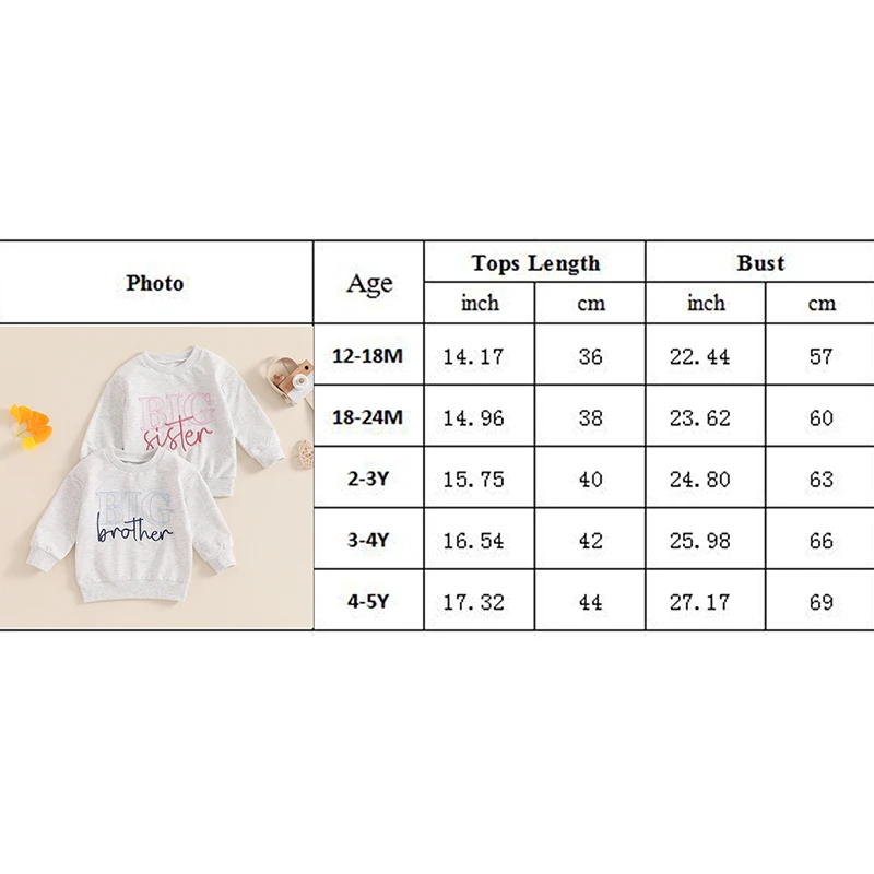 Toddler Girls Boys Sweatshirts Sister Brother Matching Clothes Letter Embroidery Crew Neck Long Sleeve Kids Pullovers Fall Tops
