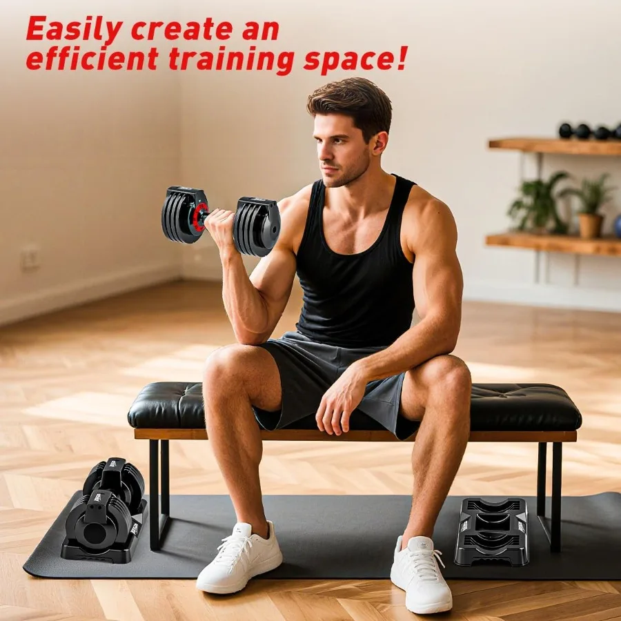 These adjustable dumbbells scale from 25 to 55 lbs per hand using quick-pin or dial systems, featuring metal anti-slip handles for secure full-body workouts.