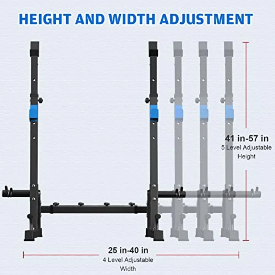 GREAT ADDITION TO THE HOME GYM — As a adjustable squat rack, it can collocate with other fitness equipment such as weight benches, barbells perfectly.The perfect addition to your home gym,