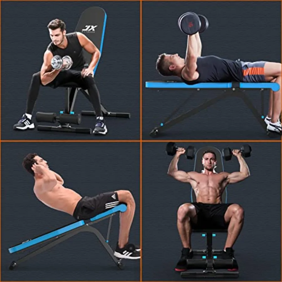 【GREAT ADDITION TO THE HOME GYM】Get 5 functional equipment in 1 JX FITNESS workout bench. What you get is not only a weight bench, but also a squat rack, a barbell rack, workout bench, and a leg developer machine. Designed for full-body training at home.