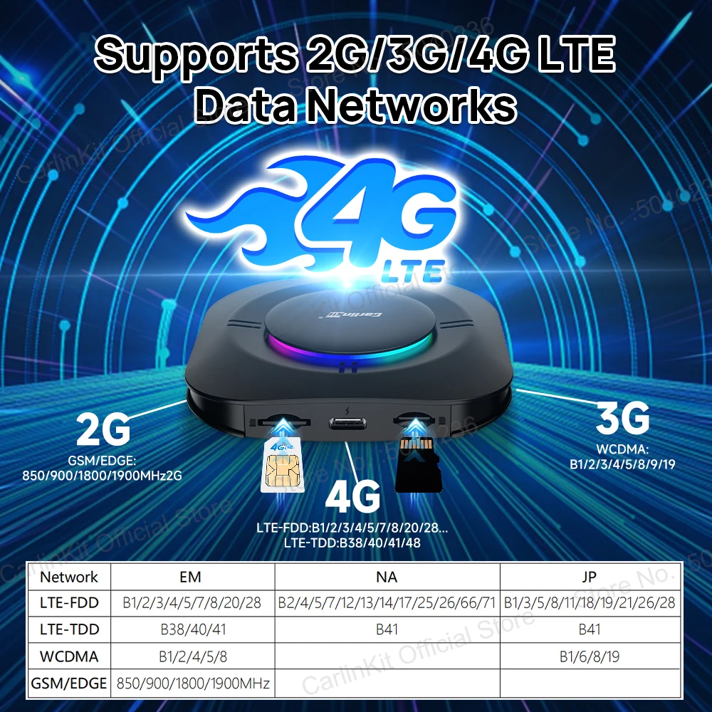 A built-in 4G module and SIM card slot enable the box to connect to mobile networks on its own. This feature allows always-on connectivity for apps, traffic updates, and cloud services even when the paired phone is not sharing a hotspot. The combination of WiFi, Bluetooth, and cellular options gives more flexibility to choose the most reliable connection on each trip.