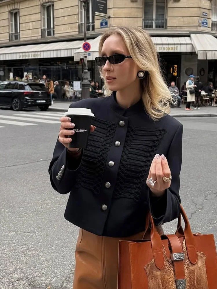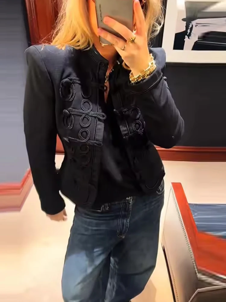 Contemporary military fashion tempers utilitarian origins with refined proportions suiting women’s wardrobes. Single breasted clean lines soften traditional boxiness while stand collar maintains architectural interest. Denim updates rigid cotton canvas with casual approachability. Therefore, historical references gain contemporary relevance without costume effect. Wearers command attention through thoughtful reinterpretation rather than imitation.