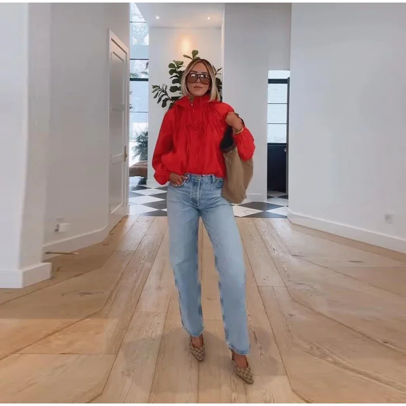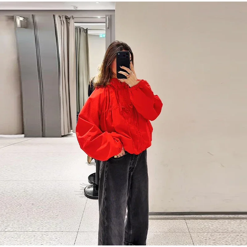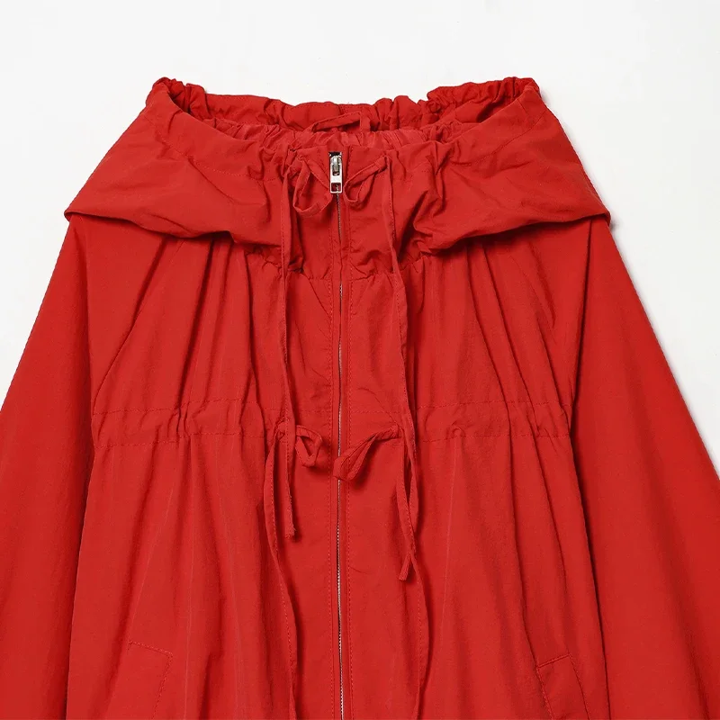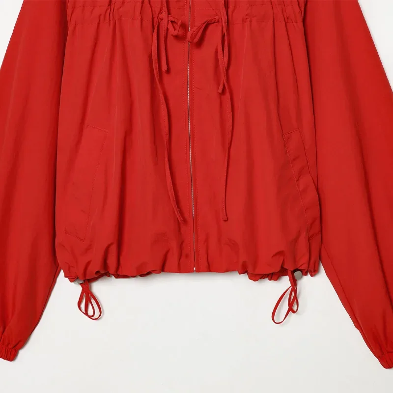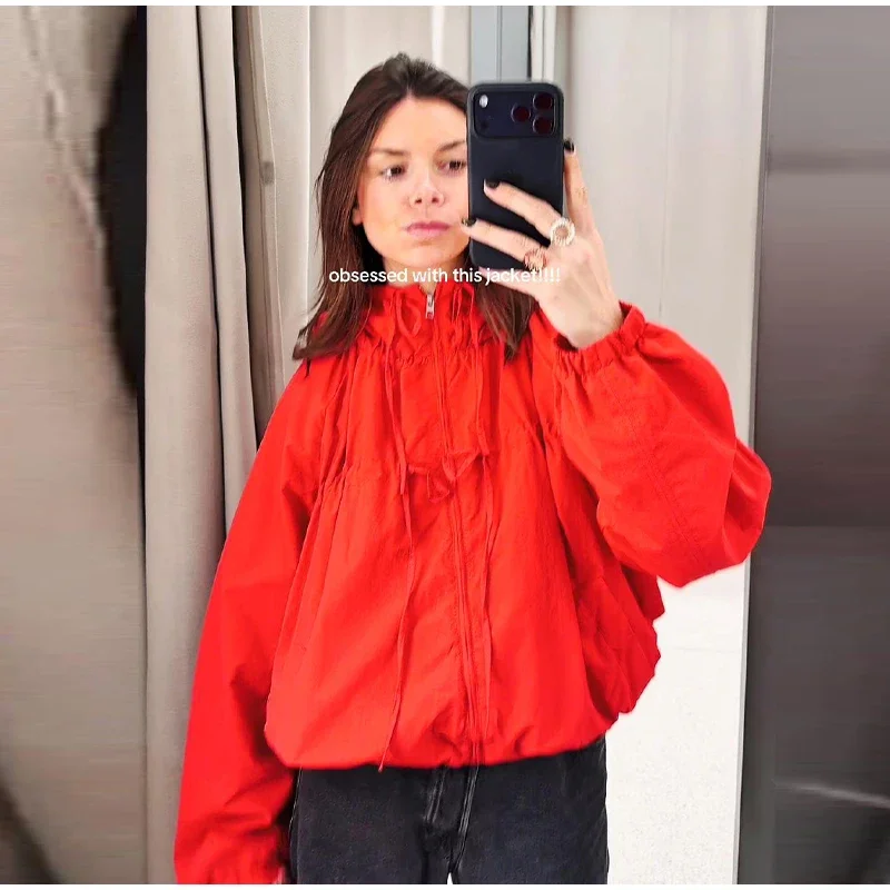 This women’s hooded jacket combines chic street style with 2026 spring fashion through its loose silhouette and thoughtful detailing. Full sleeves offer coverage while the stand collar frames the neckline cleanly for a structured yet relaxed look. Multiple zippers add functional style points that elevate basic outerwear into fashion-forward territory.