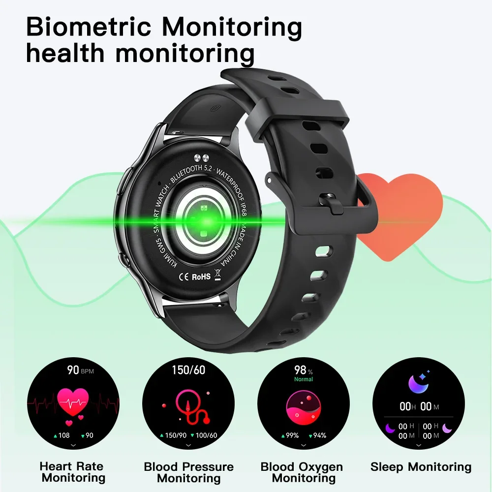 KUMI GW5 equips 1.39-inch high-definition TFT touchscreen delivering 360×360 resolution for sharp visuals and fluid navigation. Always-on display shows time, steps, and heart rate at glance conserving battery through LTPS technology. 600 nits brightness maintains readability under direct sunlight during outdoor runs.