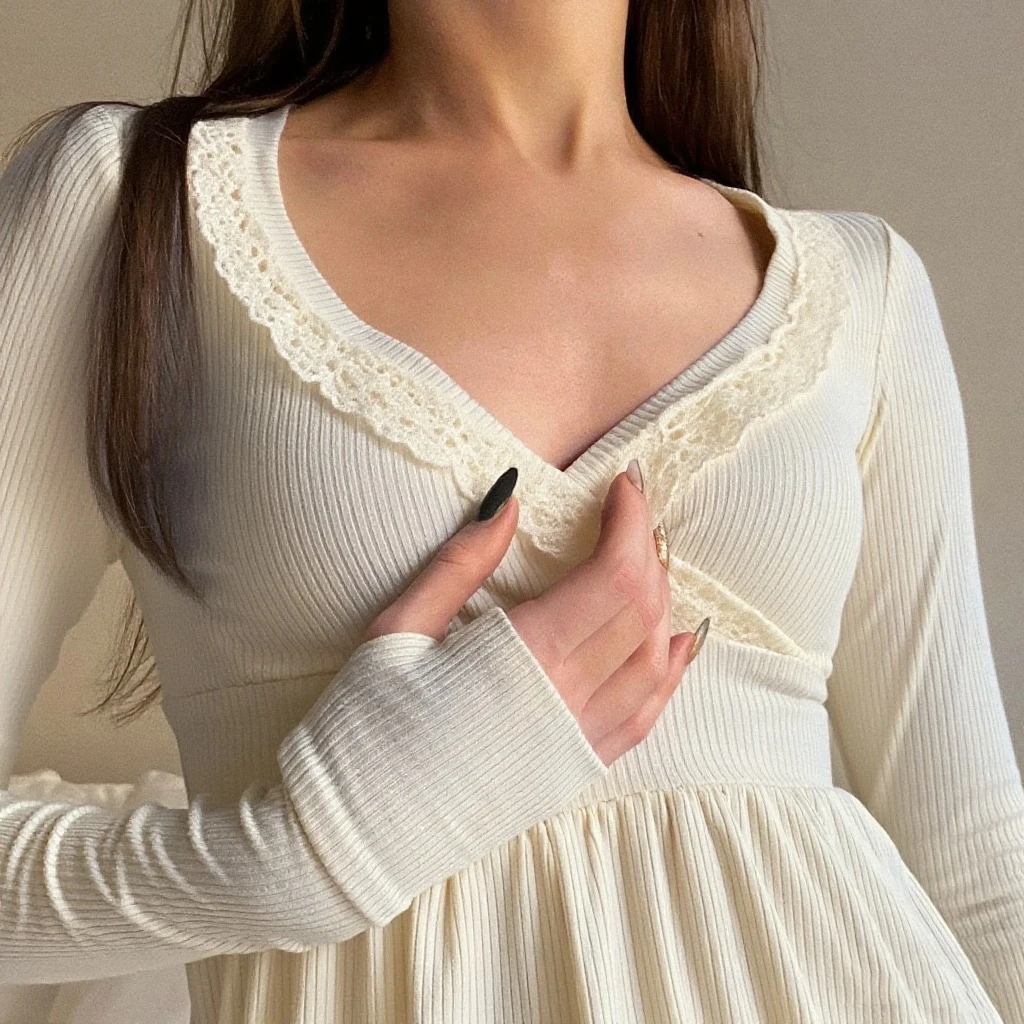 This long sleeve lace trimmed wrap blouse is designed to turn heads, blending romantic details with a flattering wrap silhouette that works for club nights and street style outfits. The wrap front shapes your waist and creates a deep V neckline, giving you a feminine, hourglass look with minimal effort. Lace trim around the neckline or edges adds a delicate, sexy touch that elevates even simple jeans or faux‑leather pants. Offered in sizes S, M, and L, it’s made to fit closely while still allowing comfortable movement for dancing and going out.