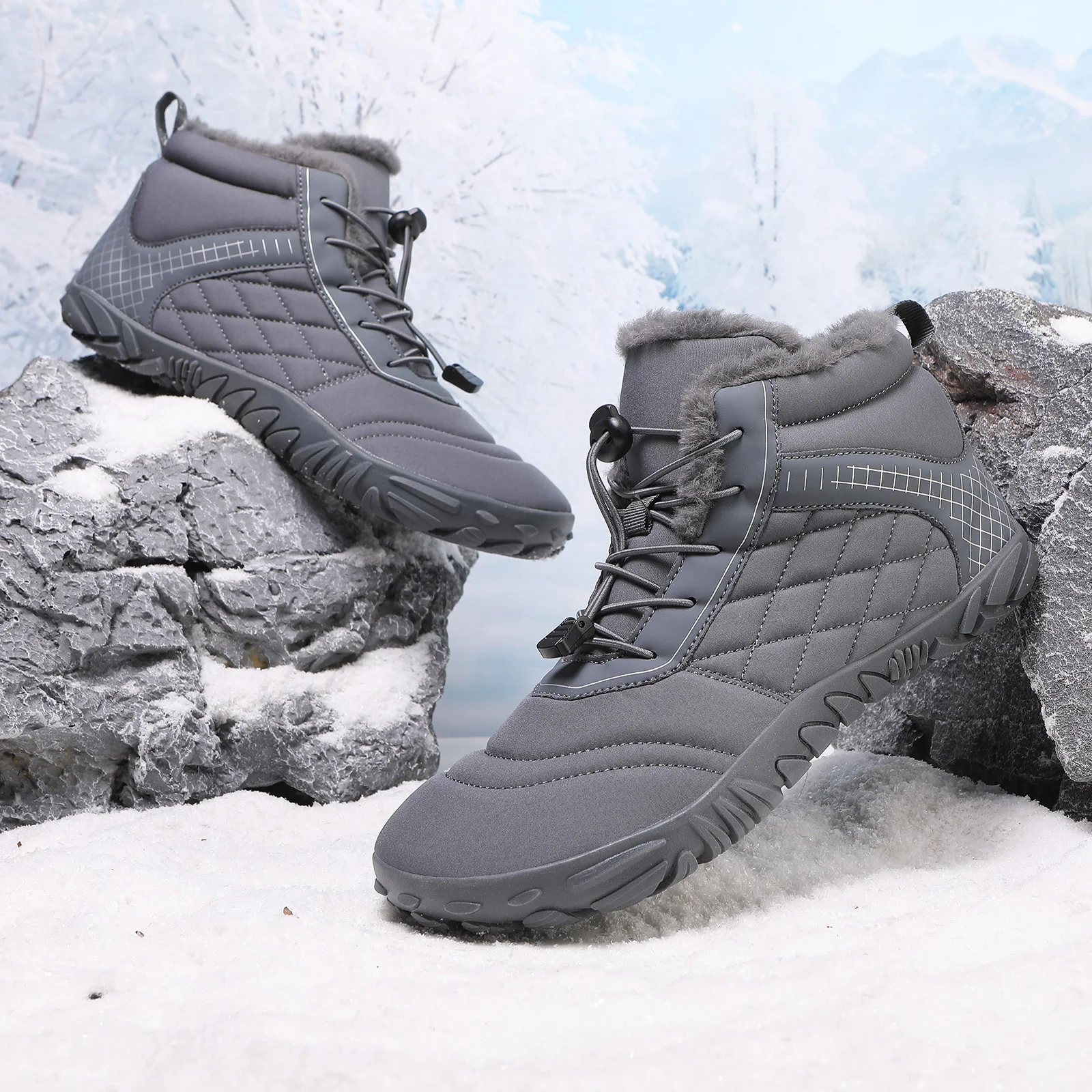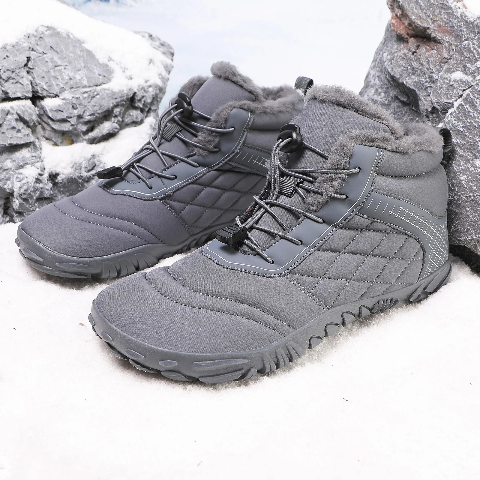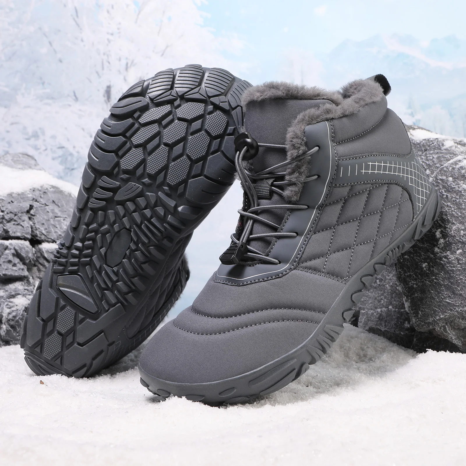 Plus Size Barefoot Hiking Boot Fleece-Lined Ankle Bootie Anti-slip Casual Sneakers Thickened for Men Women