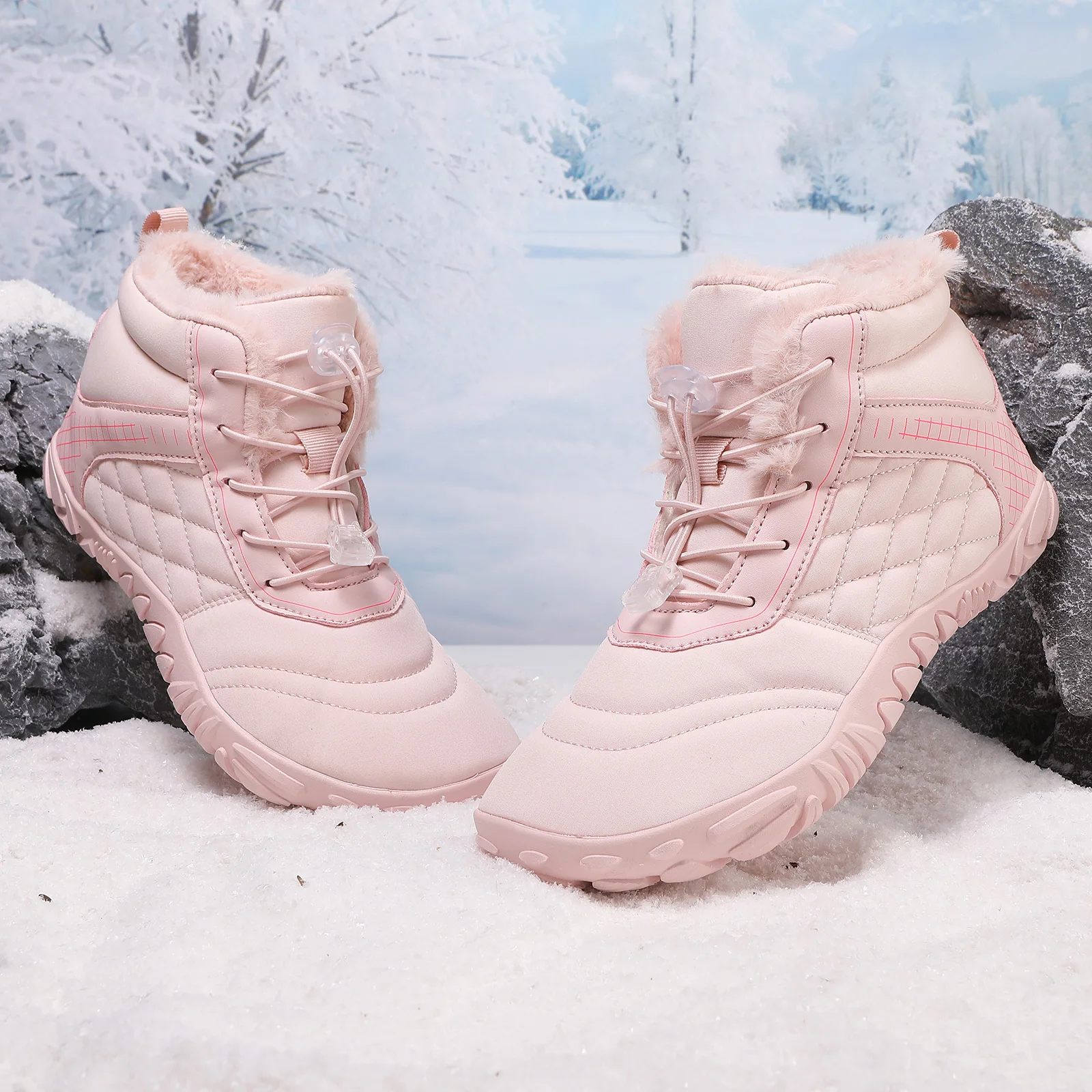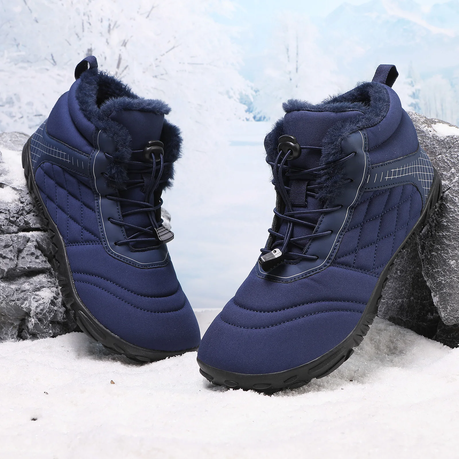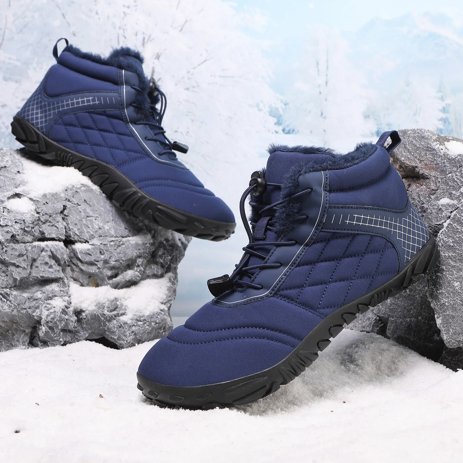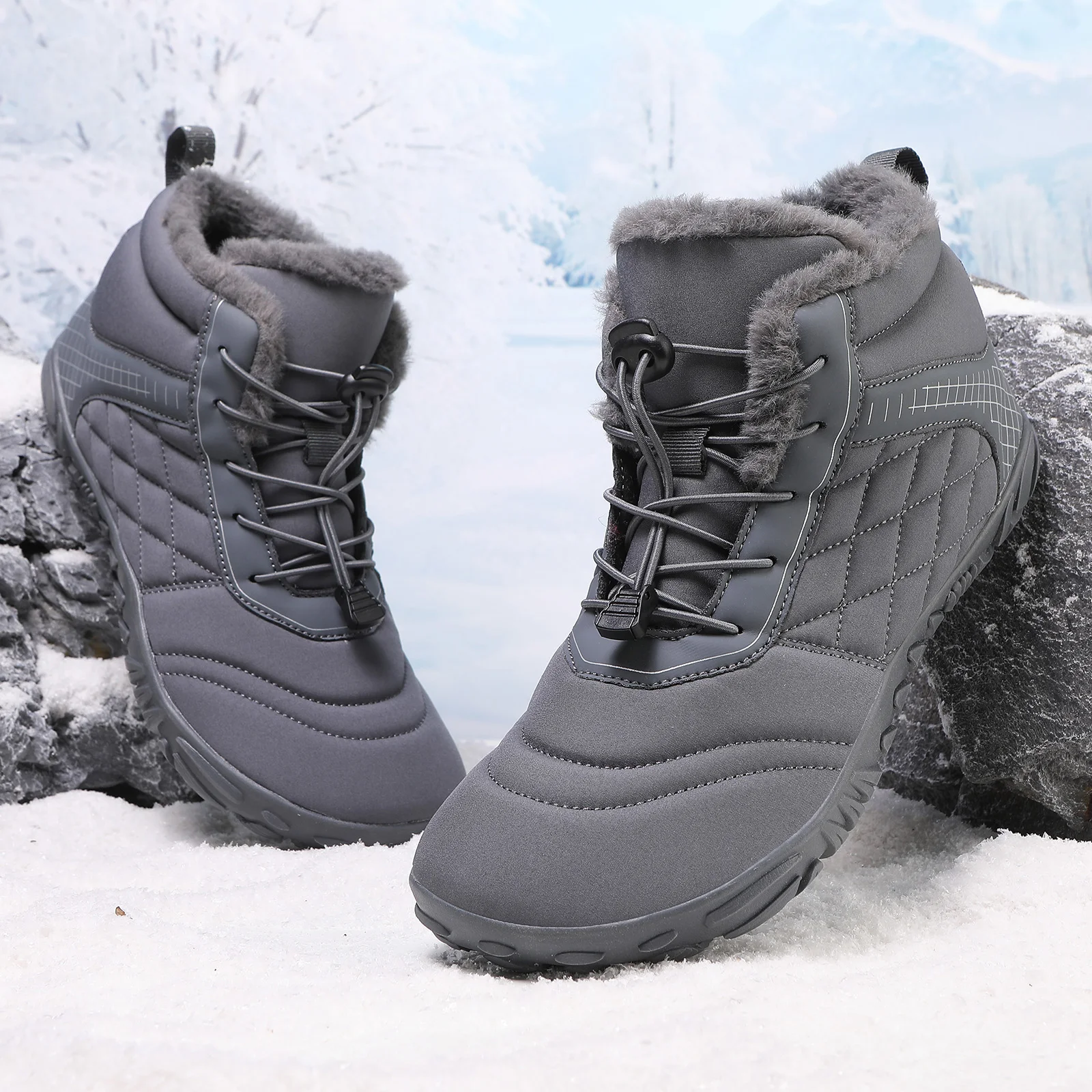 Plus Size Barefoot Hiking Boot Fleece-Lined Ankle Bootie Anti-slip Casual Sneakers Thickened for Men Women