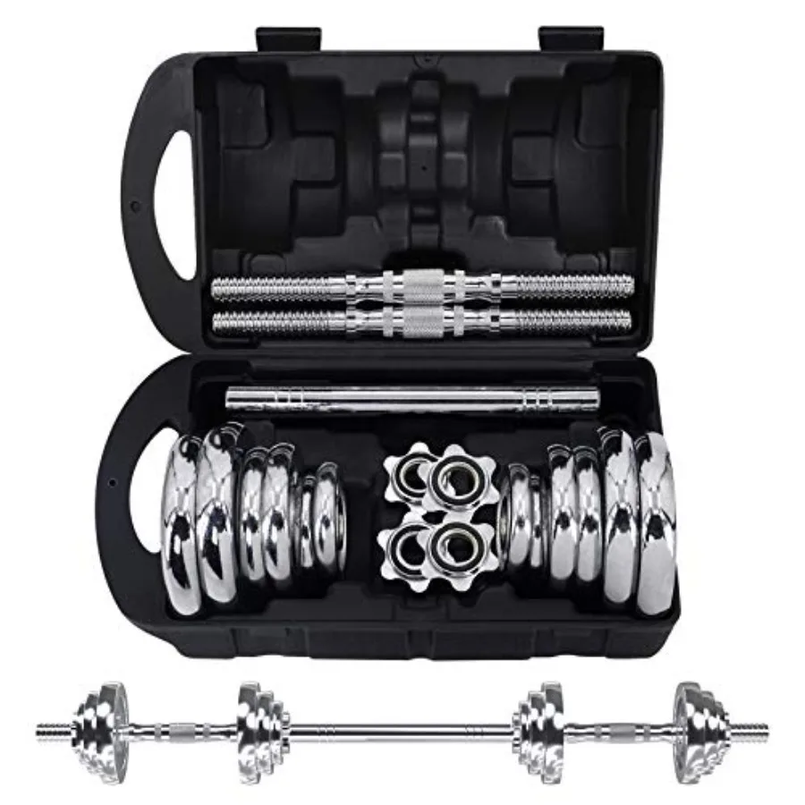 VIVITORY Fitness dumbbells adjust from lightweight warmups to 110 lb heavy hitters using cement-filled plates and a metal connecting rod that transforms pairs into barbells instantly.