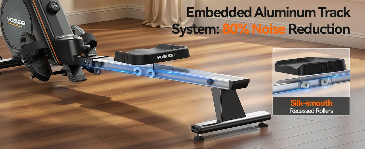 【Ergonomic & Steady Rowers】Aluminum slid rail ensures your rowing movement more smoothly, quietly and stability than Normal black iron ones. Molded padded elastic seat is designed to be very comfortable and functional