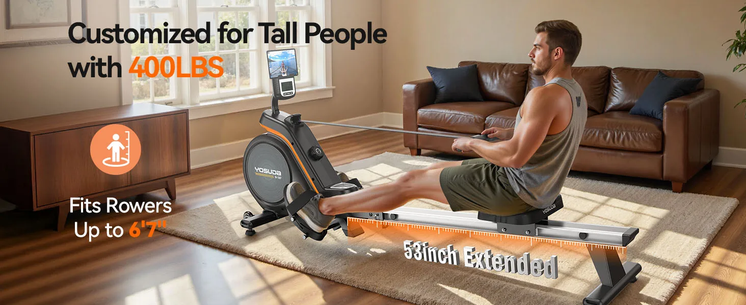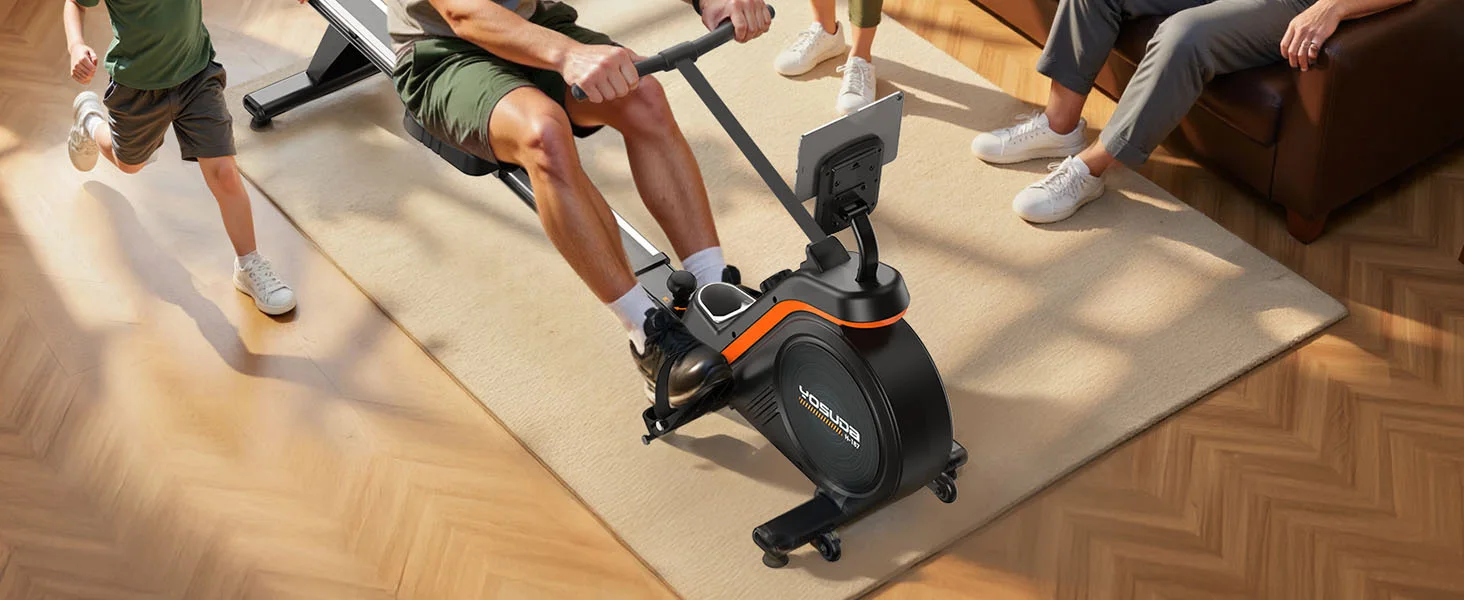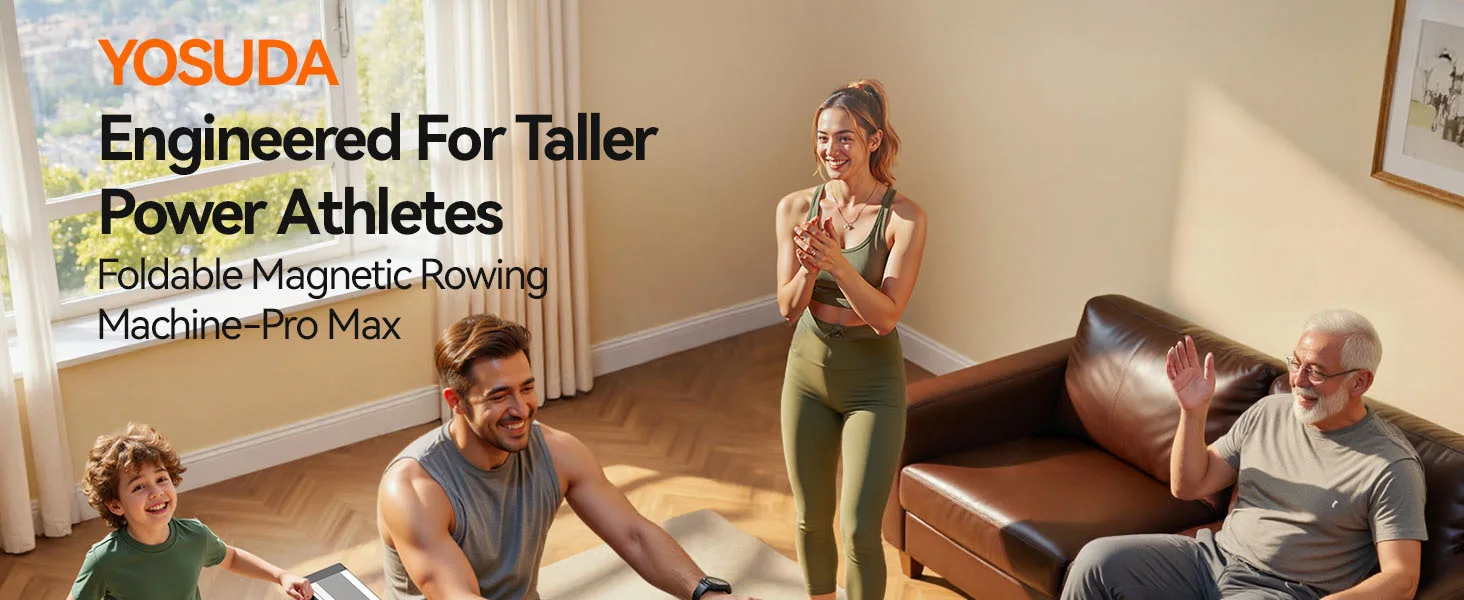 The YOSUDA Magnetic Rowing Machine delivers smooth full-body conditioning through 16-level magnetic resistance system engaging 90% muscle groups across legs core arms efficiently. 350-pound capacity steel frame supports taller athletes up to 6’6″ with 49.2-inch slide rail accommodating long inseam strokes biomechanically. Bluetooth connectivity integrates Kinomap app immersive virtual rowing races maintaining motivation beyond monotonous sessions psychologically. Therefore, CrossFit power athletes achieve cardiovascular strength gains apartment garages without $1500 Concept2 investment expensively.