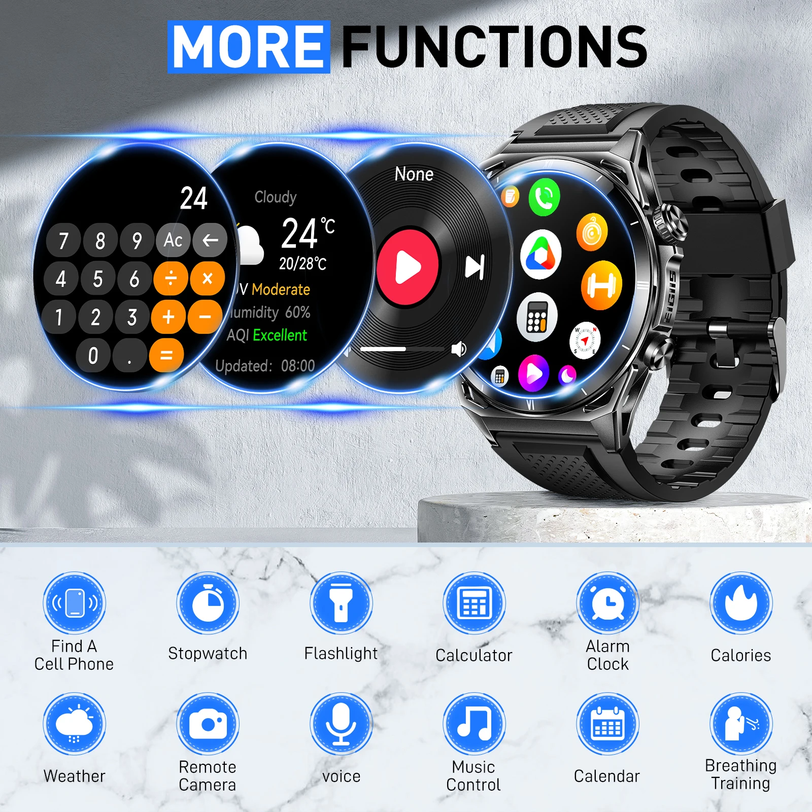 The EIGIIS KE6 Smart Watch stands out with its sophisticated style and advanced technology. Designed for both men and women, this watch features a stunning 1.43-inch AMOLED display that delivers vibrant colors and crisp details. The slim, black sports band complements any outfit, making it perfect for the gym, office, or a night out. Its lightweight build ensures comfort all day long. The round dial and intuitive interface make navigation effortless, so you can focus on your goals without distraction. Every glance at your wrist feels like an upgrade.